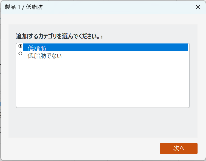 - 低脂肪かどうか(低脂肪、低脂肪でない)