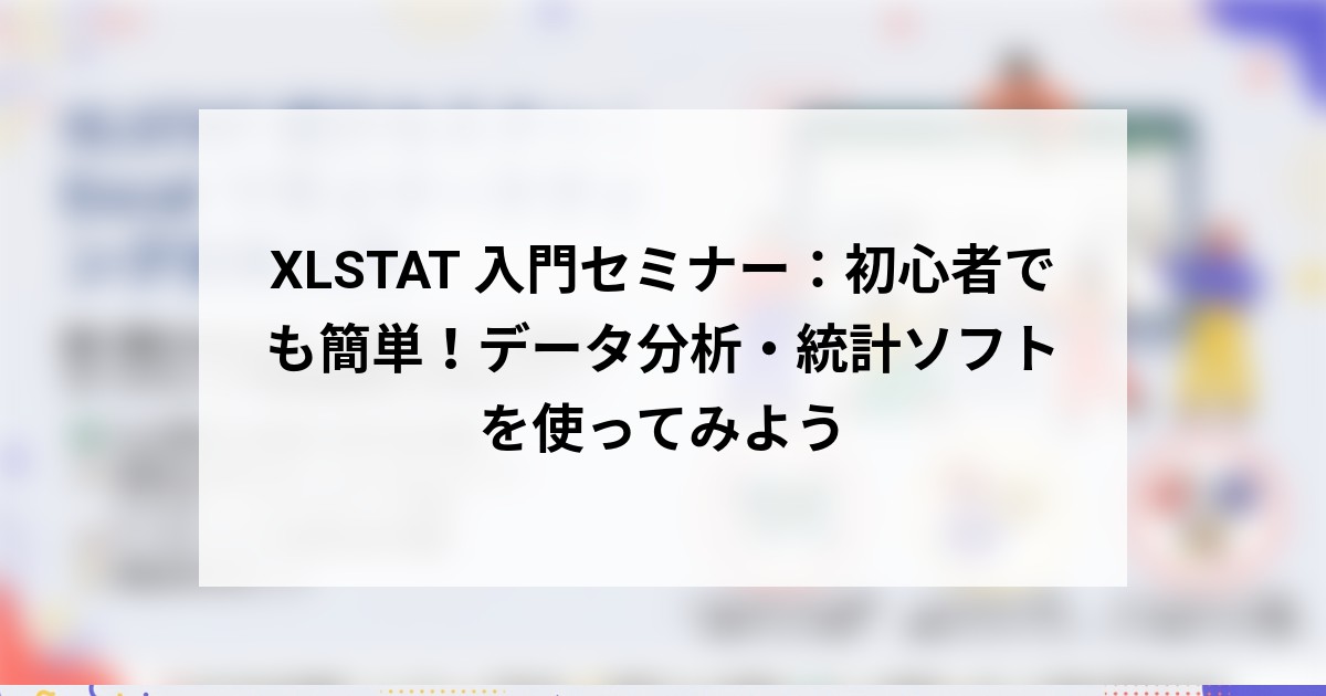 XLSTAT 入門セミナー:初心者でも簡単!データ分析・統計ソフトを使ってみよう
